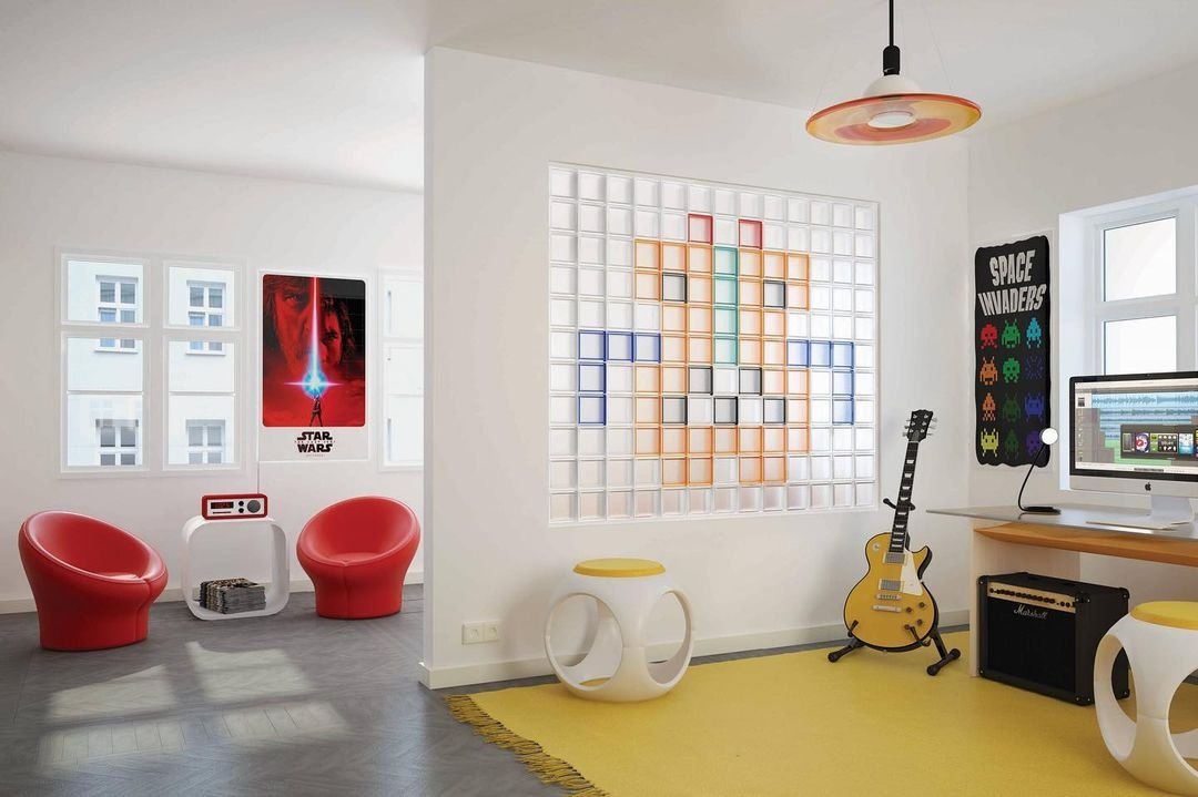 Chaque gamme est associée à un univers et une ambiance spécifiques. Les propositions de couleurs permettent de créer des réalisations très personnelles et de laisser libre court à la créativité de chacun, par exemple avec des cloisons aux motifs pixellisés!