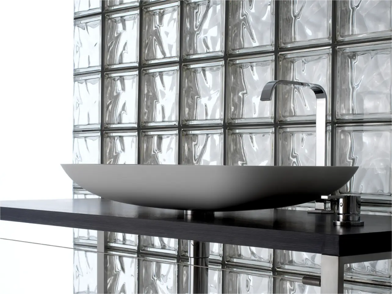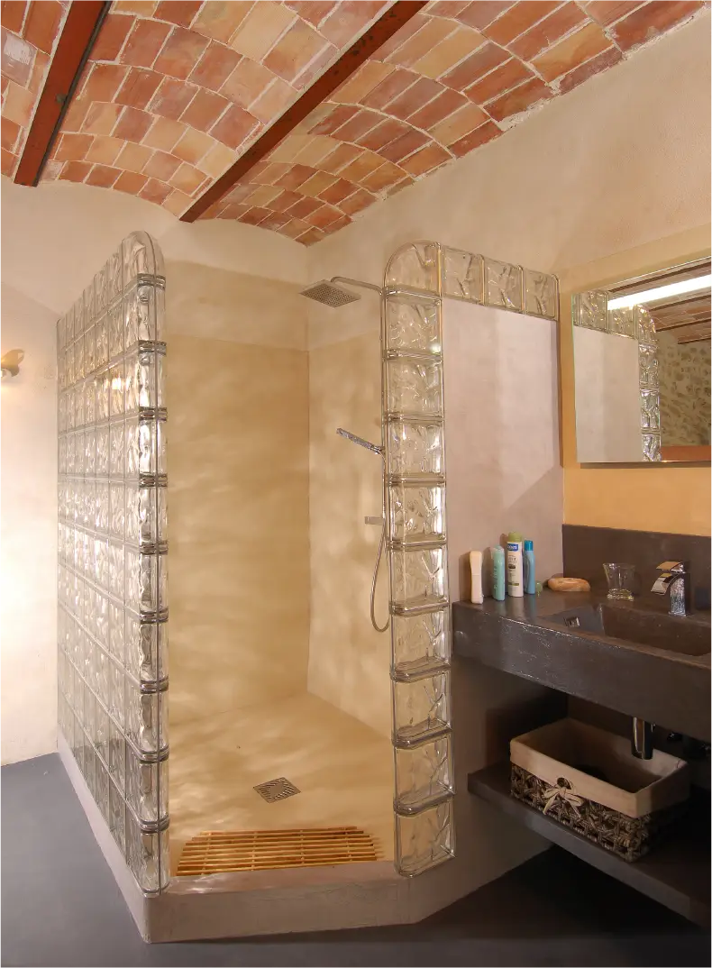 Briques de verre pour une luminosité naturelle, douce et élégante, sublimée par un subtil reflet métallisé. Disponibles en finition ondulée ou lisse, pour un rendu design et raffiné.