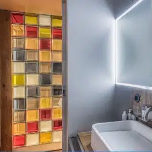 Briques de verre pour pose avec des joints de seulement 2 mm pour un véritable mur de lumière.