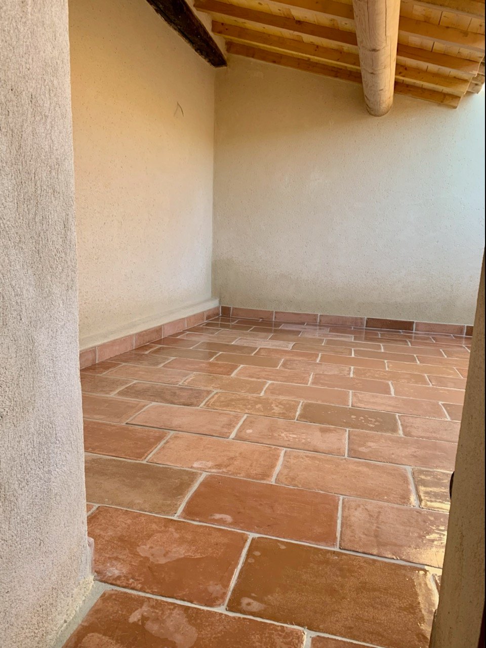 Naturellement fabriquées en couleur Terre cuite, ces dalles ont également un rendu sublime dans des teintes claires et ocrées (grège Warm ou Tann, Pierre, Blanc naturel, etc.). L’application recommandée d’une patine en atelier renforce le côté ancien et naturel de ces pièces.