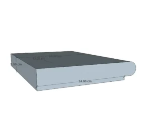 Existe aussi avec un nez arrondi sur les deux longueurs pour des configurations avec la margelle seule, sans plage attenante, en 50×30 cm.