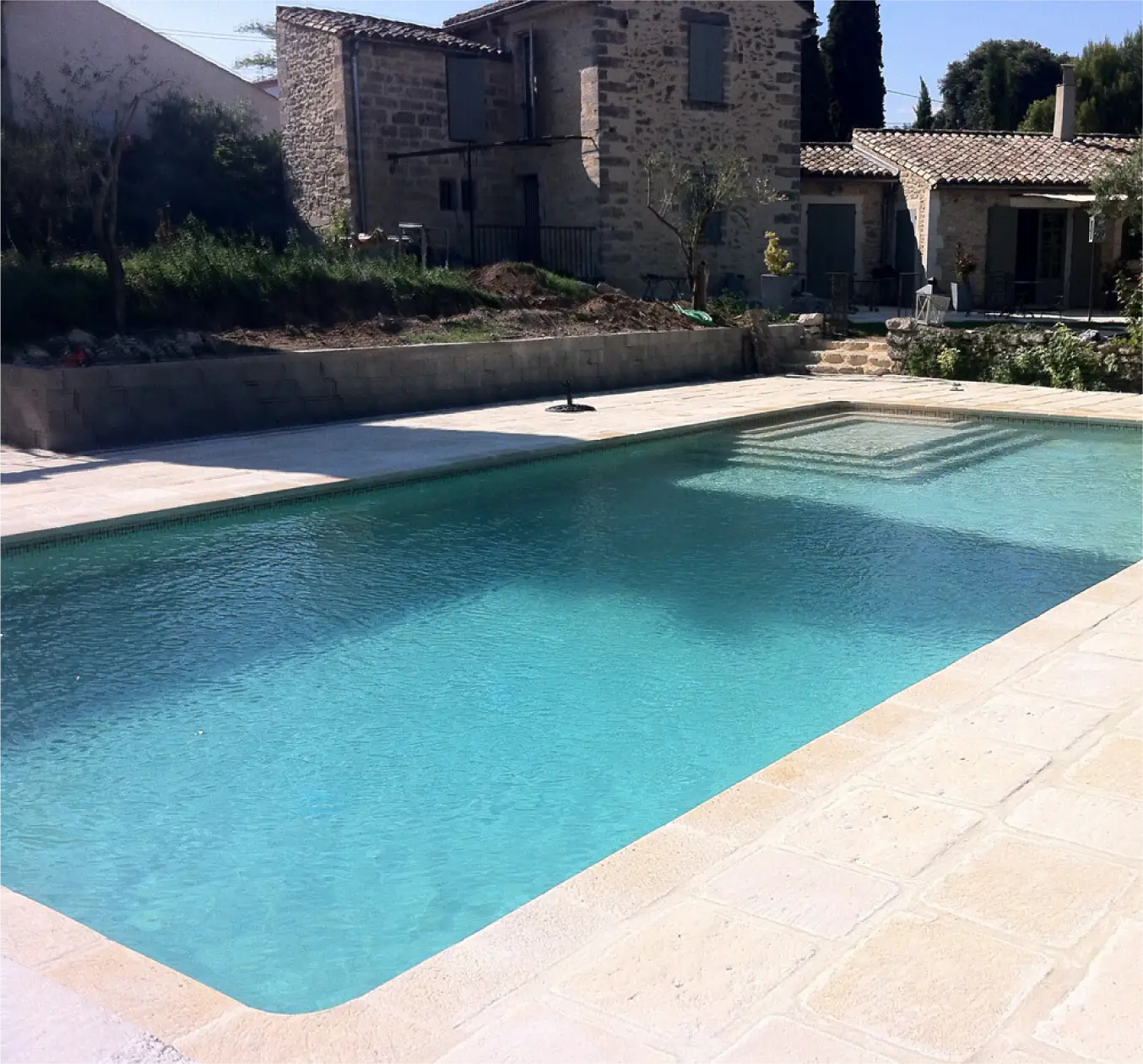 Dallages et margelles de piscine : de façon générale, il faut compter 5-6 semaines minimum.
