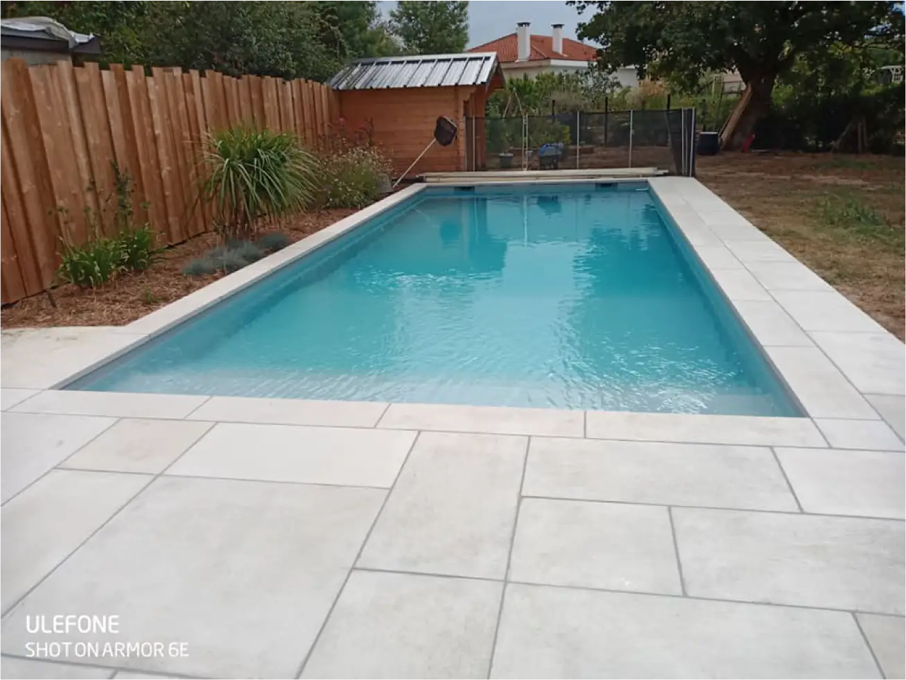 Dallages et margelles de piscine : de façon générale, il faut compter 5-6 semaines minimum.